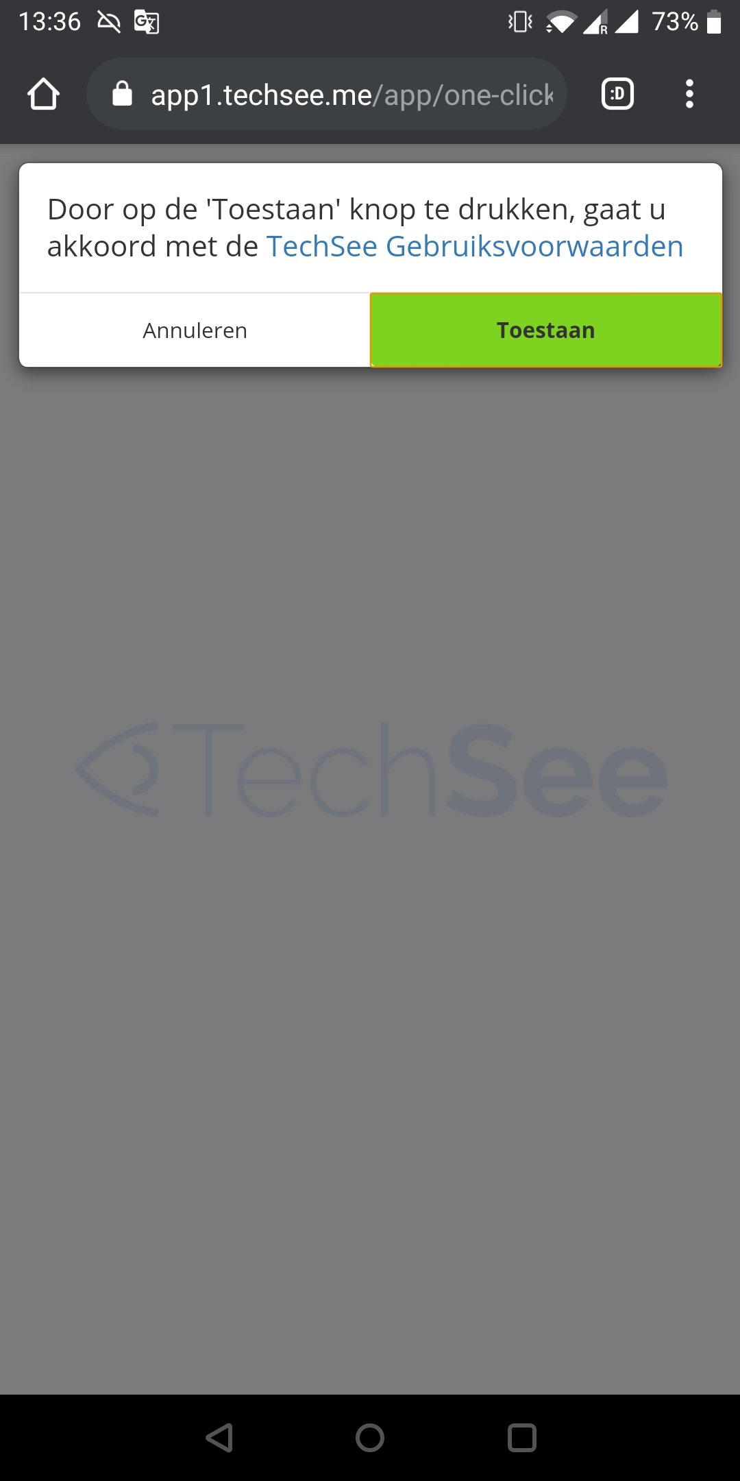 | De klant ontvangt een sms met een link naar TechSee. | TechSee opent vervolgens in de browser van de klant, waar deze toestemming moet geven om de applicatie te gebruiken. |