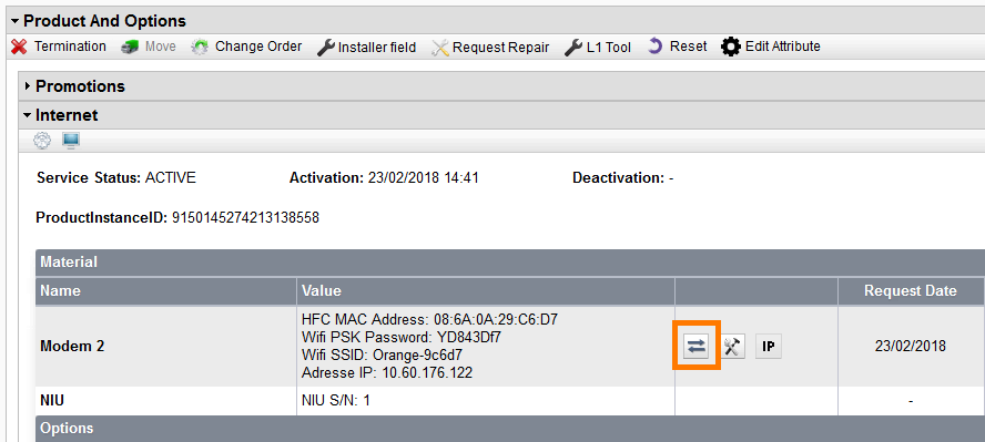 Scroll naar Prodcuts And Options en in Internet > Modem klik je op de knop Hardware Swap.