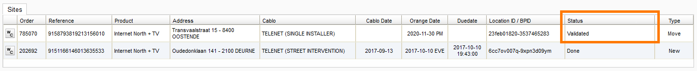 Onder Provisioning zijn alle kabelaansluitingen terug te vinden die momenteel in behandeling zijn, onderverdeeld in verschillende submenu's met mogelijke statussen waarvan wij er drie gebruiken: