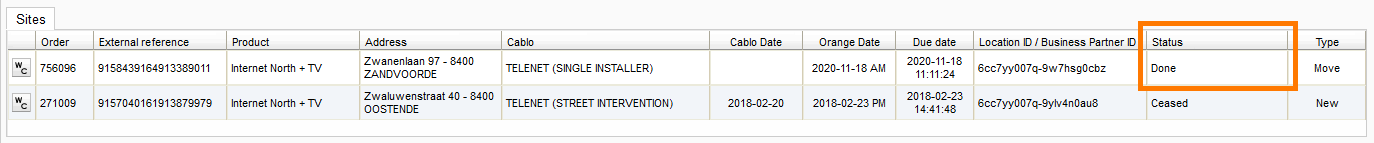 Als een klant Feasible staat in Customer management > Administrative Status > Sites zoals hier: