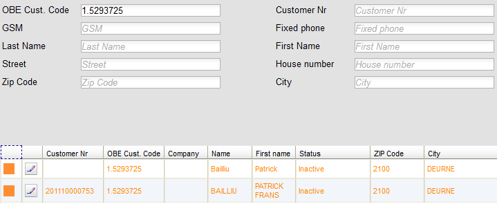 In dit geval zijn er verschillende ’klanten’ (door een vroegere aanvraag), je zult handmatig moeten controleren door de klant te openen (klik op eender welke plek in de rij) welke de meest recente/juiste is.