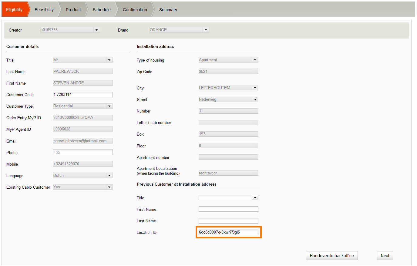 Tip: Soms kom je direct in Feasibility terecht. Het is dan belangrijk om de knop Previous niet te gebruiken, soms verdwijnt de Location ID dan en moet je deze opnieuw ingeven.