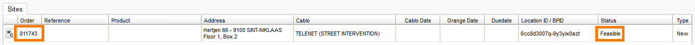 Dan kan de aanvraag met het klant- of ordernummer via Feasible order worden teruggevonden: