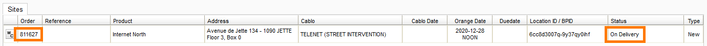 Als een klant On Delivery staat in Customer management > Administrative Status > Sites zoals hier: